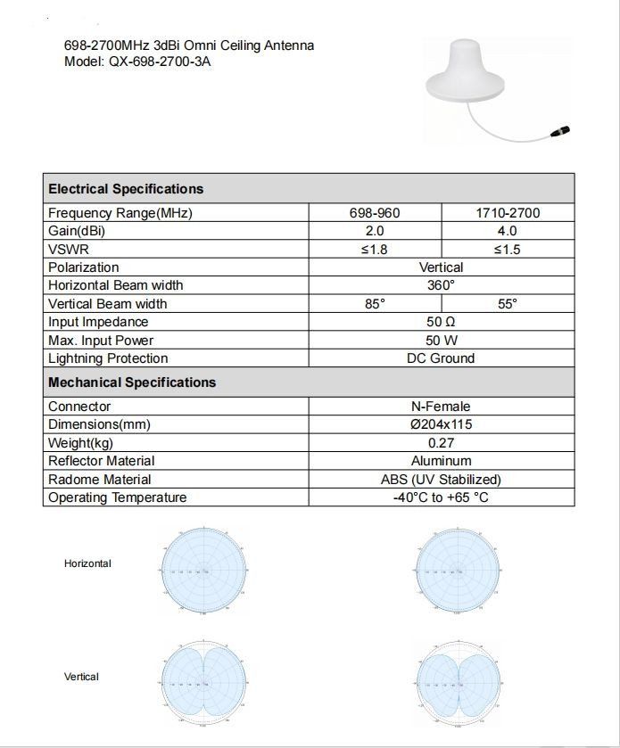 698-2700MHz 3dBi Ceiling Omnidirectional Antenna