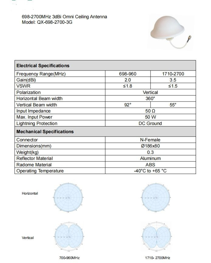 698-2700MHz 3dBi Ceiling Omnidirectional Antenna (G Type)
