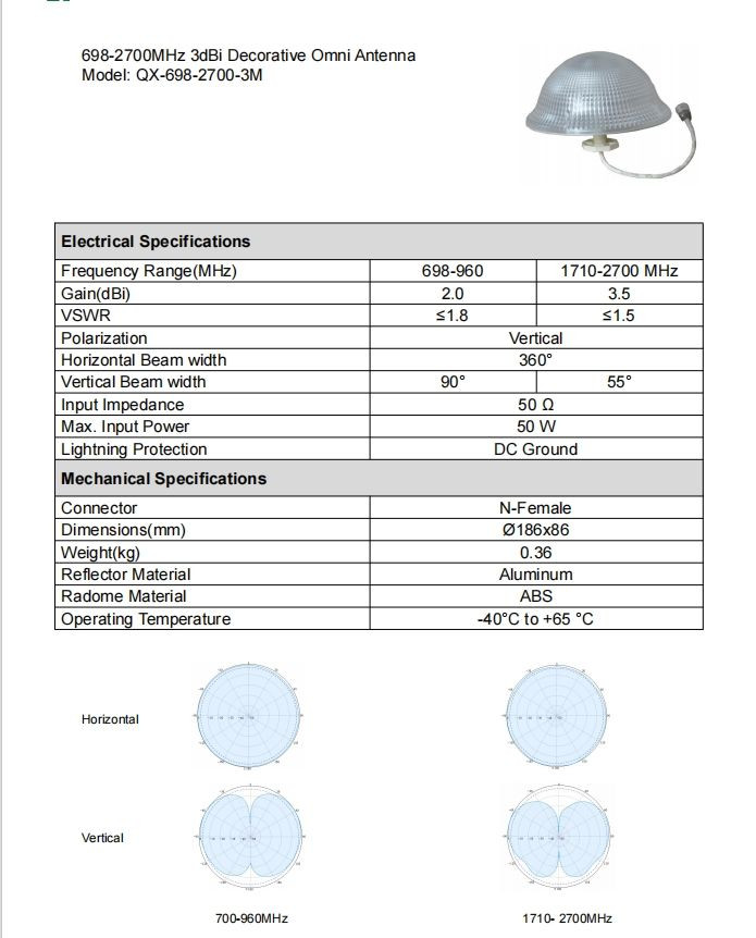 698-2700MHz 2.5/5dBi MIMO Omnidirectional Antenna