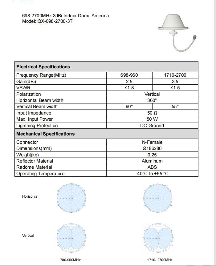 698-2700MHz 2.5/5dBi MIMO Omnidirectional Antenna