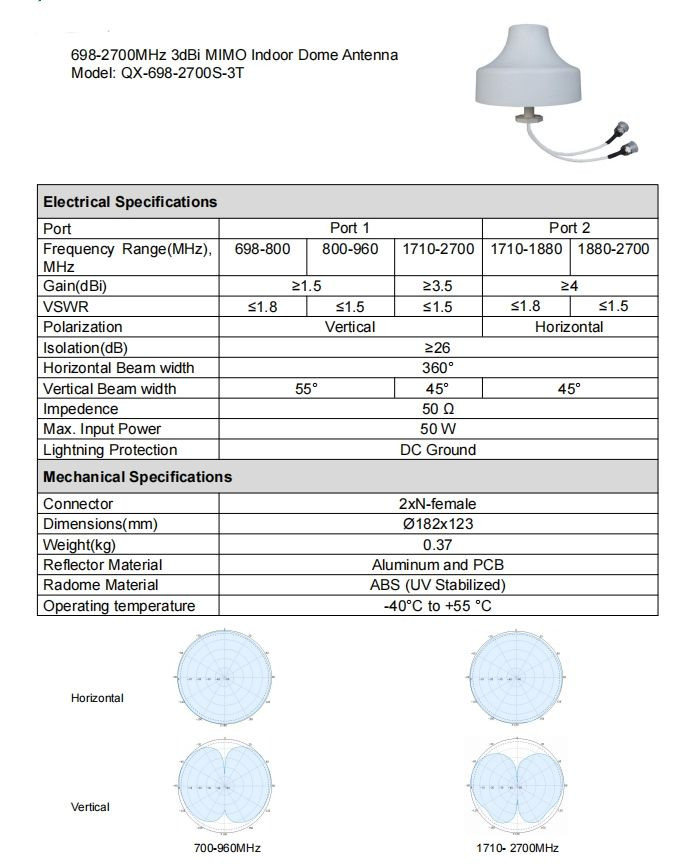 698-2700MHz 3dBi MIMO Indoor Dome Antenna