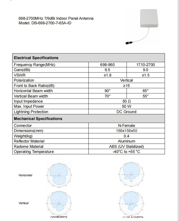 698-2700MHz 7/9dBi Indoor Panel Antenna (ID)