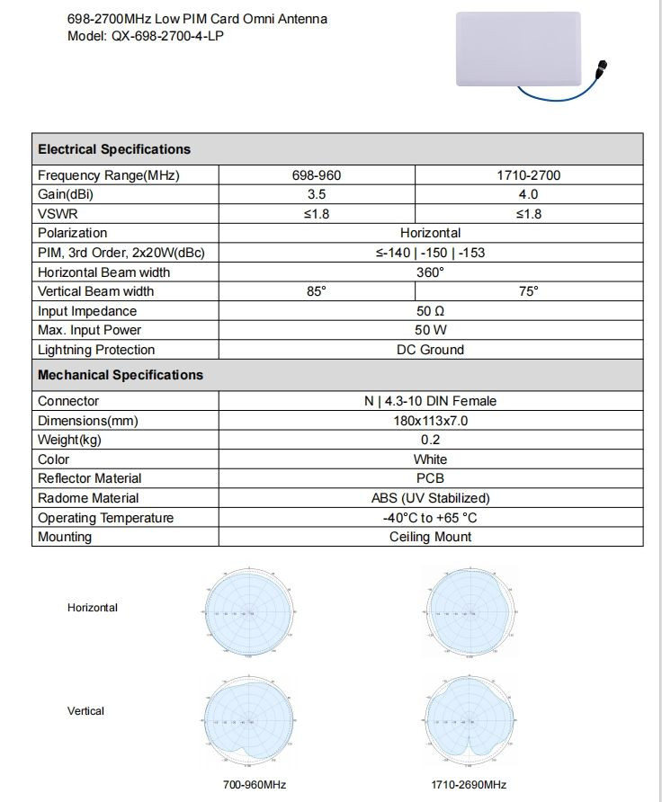 698–2700MHz Low PIM Card Omnidirectional Antenna