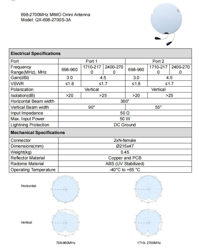 698-2700MHz MIMO Omnidirectional Antenna (Indoor)